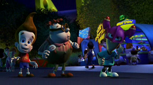 Getting back to Jimmy Neutron: Boy Genius, it’s not a bad film. Clearly the animated movie was intended for children. The CGI animation is good (it’s no Shrek or Monsters, Inc., but it’s still good for that time period) and the movie flows at a fast pace. Some of the scenes are pretty neat, such as Jimmy flying around with his jet pack, or when all the kids take off in their rockets.